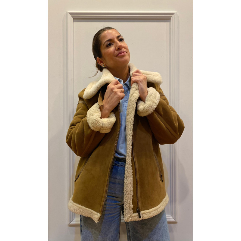 Chaquetón de señora de novak en color wisky con el interior en blanco. Es una prenda oversize fantástica