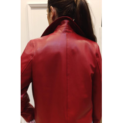 Esta Chaqueta corta de cuero en rojo .