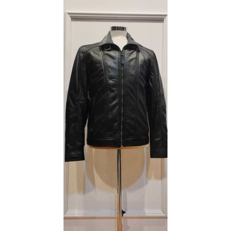 Cazadora de caballero en cuero negro.