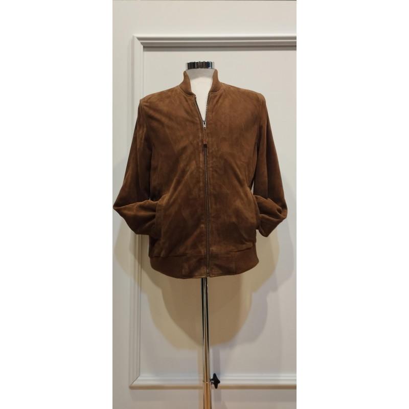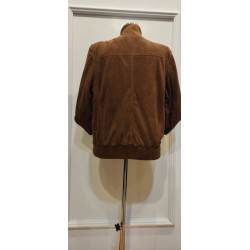 Cazadora clásica de ante con cuello puños y bajo de punto color wisky, es la clásica prenda que queda bien con todo.