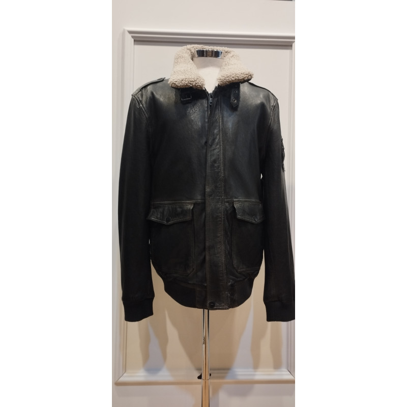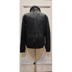 Es la clásica cazadora piloto color negro con cuello de borreguito blanco desmontable.